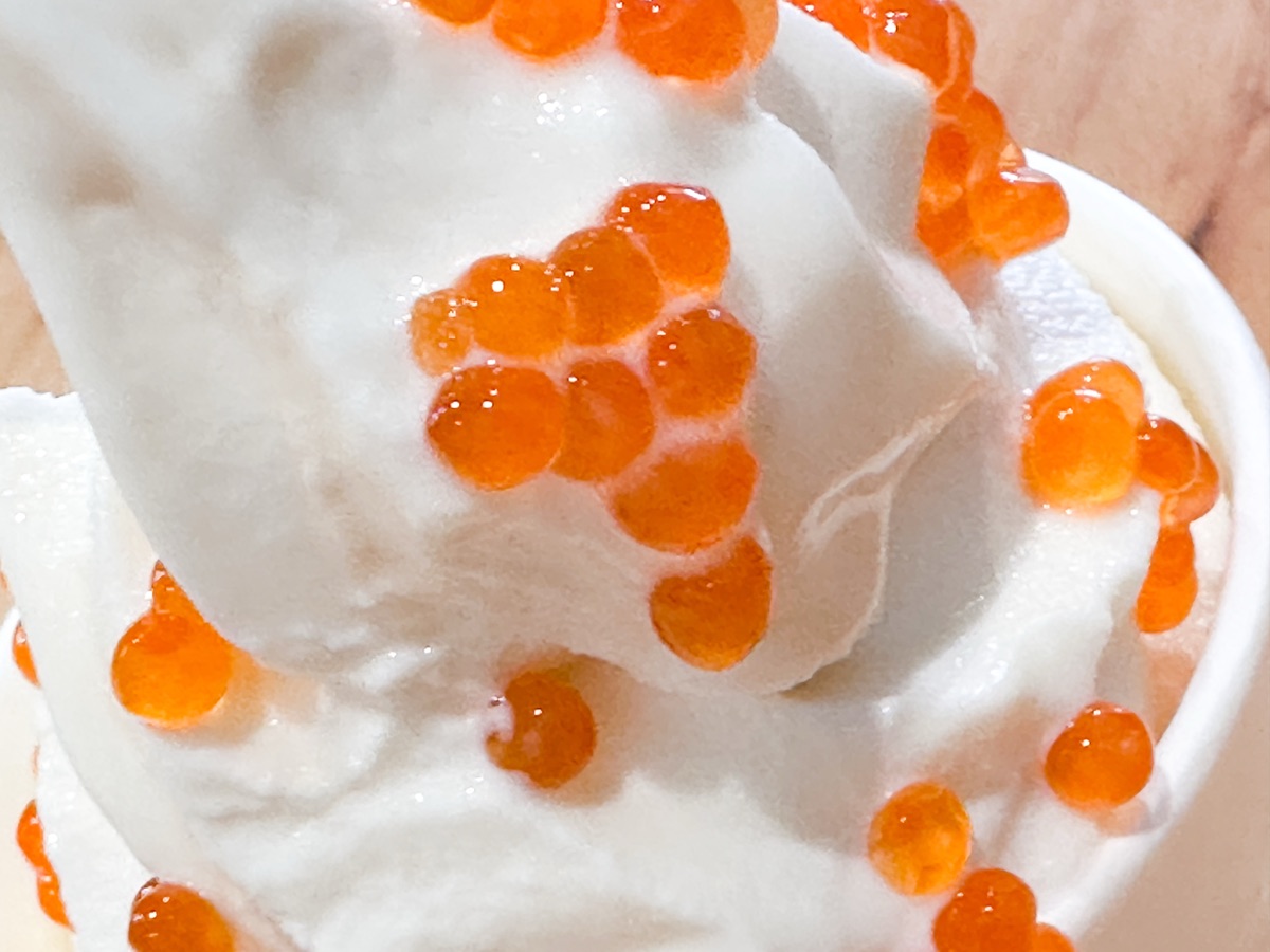 過去に醤油ソフトは何箇所かで食べたことがあり、塩気とソフトクリームはあうというのは分かっていましたが、いくらソフトもおいしかったです!塩味にくわえて、プチプチの食感がソフトクリームにあいますね。おすすめです。