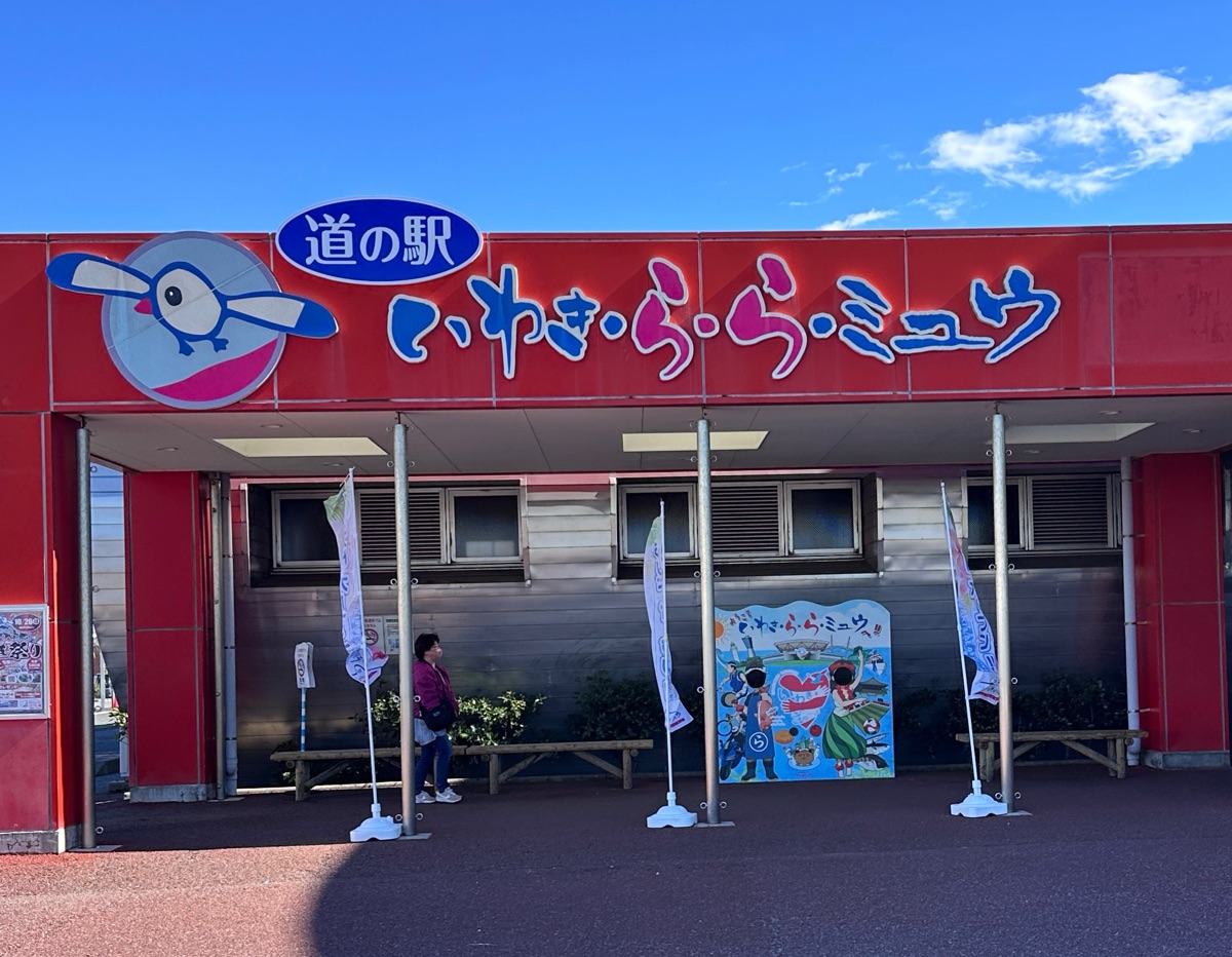 アクアマリンふくしまから、キラキラ輝く海を眺めながら5分程度歩くとあるのが、「道の駅 いわき・ら・ら・ミュウ」です。以前より観光物産センターとして存在していましたが、私たちが行った1カ月前、2025年9月12日に道の駅としてリニューアルオープンしました。