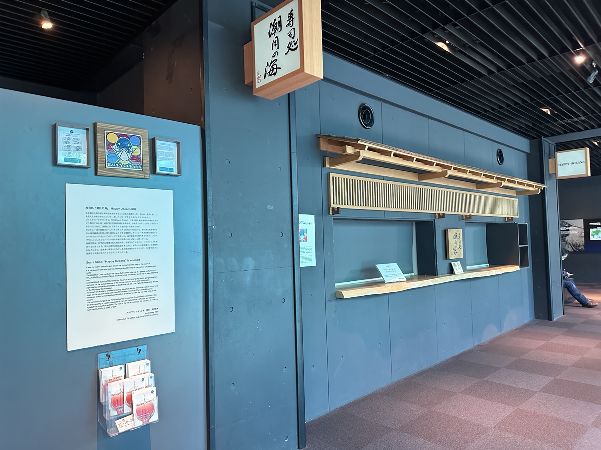 水族館の中に、立ち食い寿司とはこれまた衝撃的です。海洋資源の持続可能な利用のメッセージとして、安定したねたで提供されています。