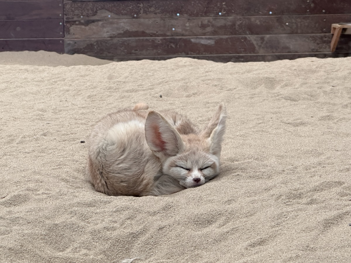 アクアマリンふくしまにいるのは、魚だけではありません。こちらはフェネック。ほぼ寝ています。
