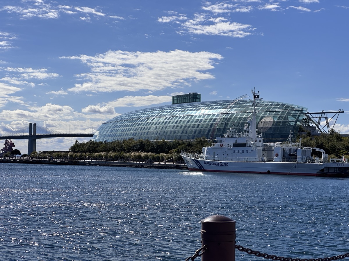 アクアマリンふくしまから、キラキラ輝く海を眺めながら5分程度歩くとあるのが、「道の駅 いわき・ら・ら・ミュウ」です。以前より観光物産センターとして存在していましたが、私たちが行った1カ月前、2025年9月12日に道の駅としてリニューアルオープンしました。