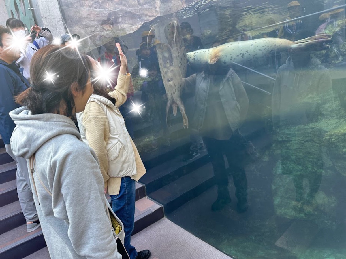 巨大なトドともガラス一枚隔てただけで愛でられます。